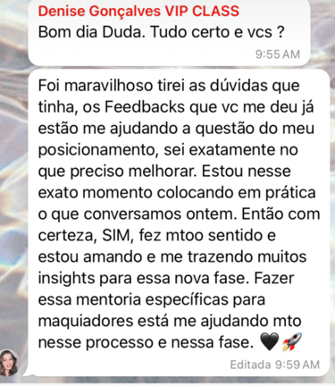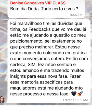 E hoje estou aqui para guia-lá aos seus objetivos, com um método prático e possível dentro da realidade das maquiadoras que irá elevar a percepção de valor do seu trabalho, da sua marca e do seu negócio beauté.