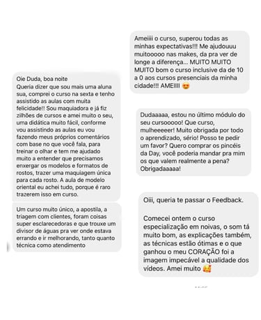 recebidos de nossas alunas presenciais e online, veja alguns deles: